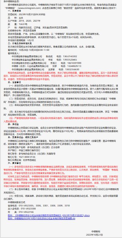 10月31日中儲糧北京分公司玉米競價銷售專場公告
