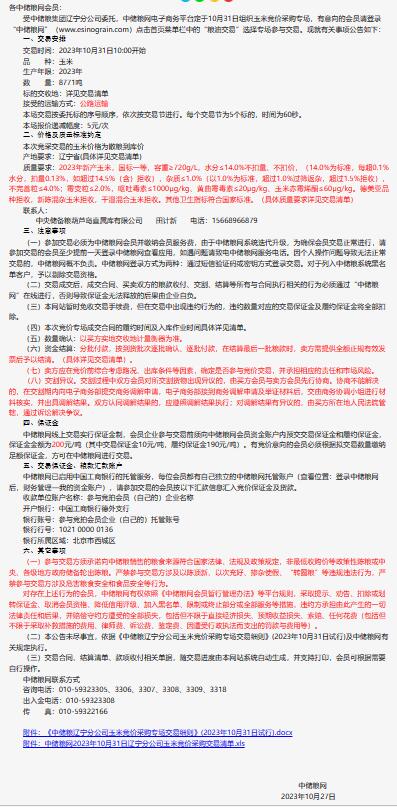 10月31日中儲糧遼寧分公司玉米競價采購專場公告