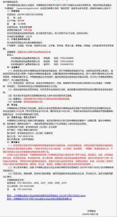 10月31日中儲糧山西分公司玉米競價采購專場公告