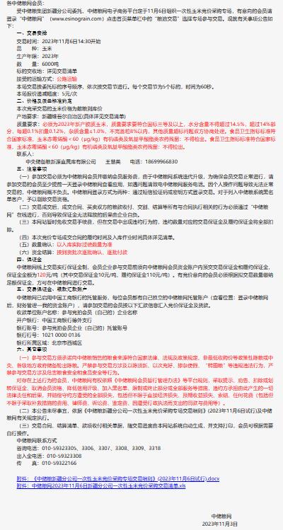 11月6日中儲糧新疆分公司一次性玉米競價采購專場公告