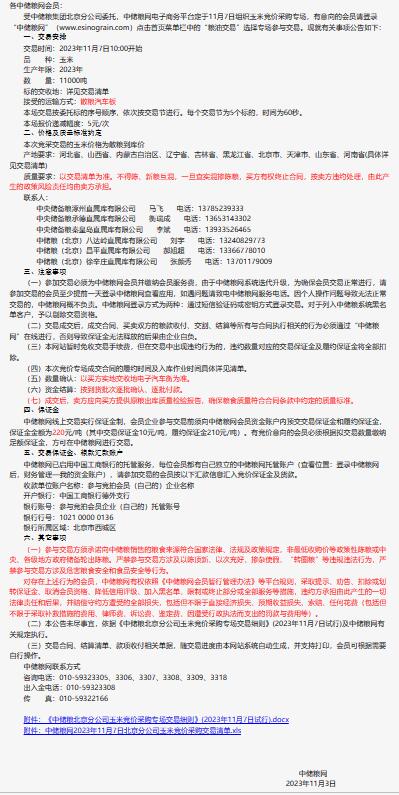 11月7日中儲糧北京分公司玉米競價采購專場公告
