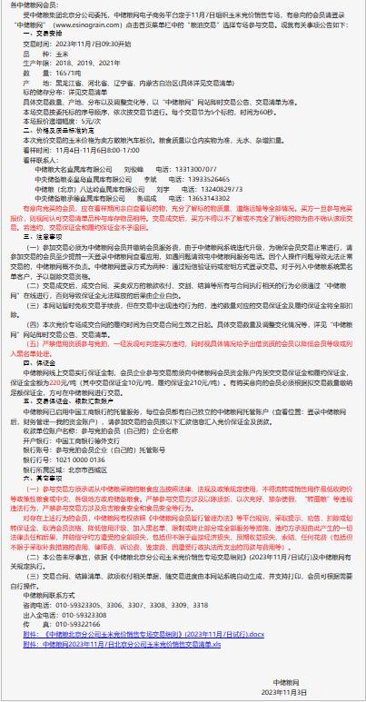 11月7日中儲糧北京分公司玉米競價銷售專場公告