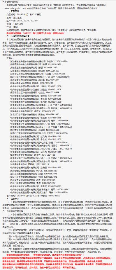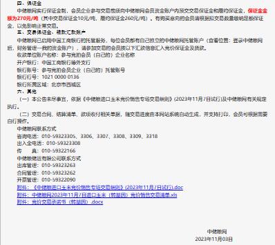 11月7日中儲糧進口玉米及整理物(轉基因)競價銷售專場公告