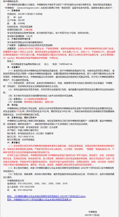 11月9日中儲糧新疆分公司玉米競價采購專場公告