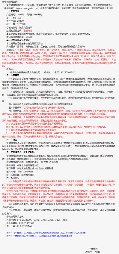11月8日中儲糧廣州分公司玉米競價采購專場公告