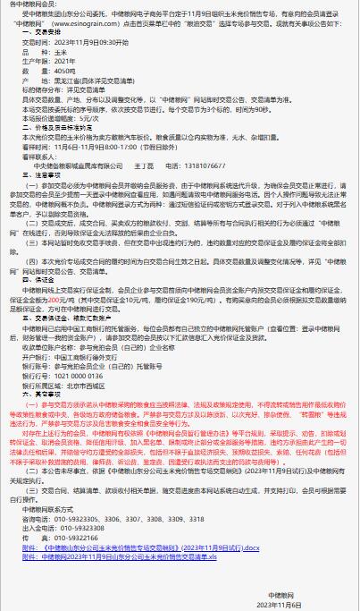11月9日中儲糧山東分公司玉米競價銷售專場公告