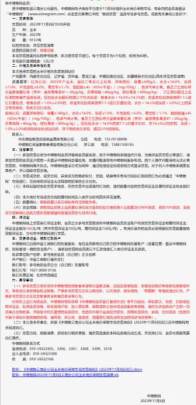 11月8日中儲糧云南分公司玉米競價采購專場公告
