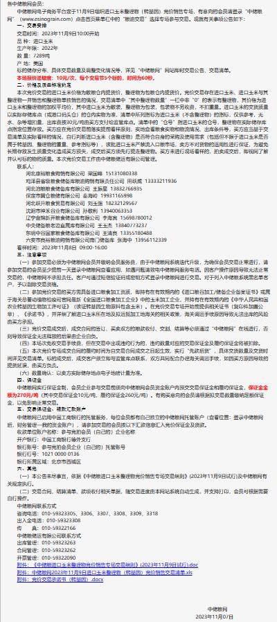 11月9日中儲糧進口玉米及整理物(轉基因)競價銷售專場公告