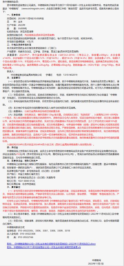 11月9日中儲糧湖南分公司一次性玉米競價采購專場公告