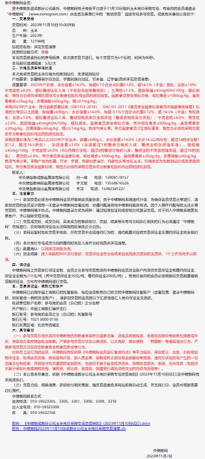 11月10日中儲糧成都分公司玉米競價采購專場公告
