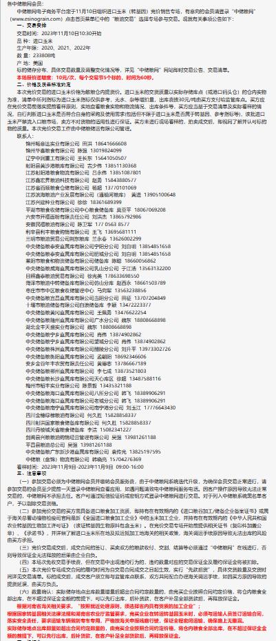 11月10日中儲糧進口玉米及整理物(轉基因)競價銷售專場公告