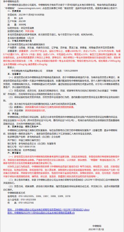 11月9日中儲糧山西分公司玉米競價采購專場公告