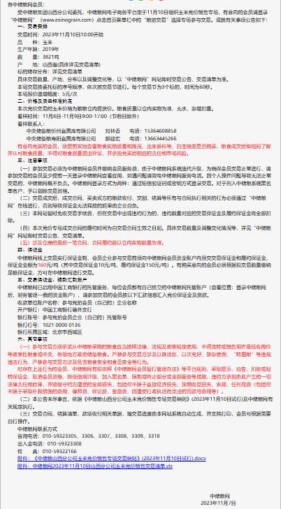 11月10日中儲糧山西分公司玉米競價銷售專場公告