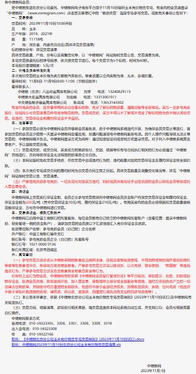 11月10日中儲糧北京分公司玉米競價銷售專場公告