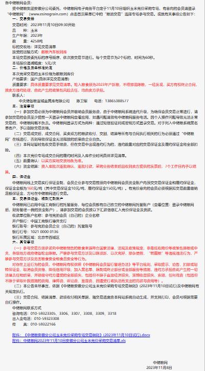 11月10日中儲糧安徽分公司玉米競價采購專場公告