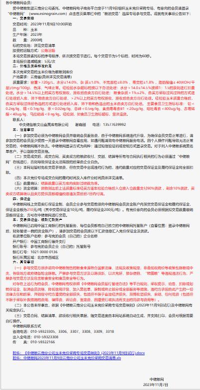 2023年11月10日中儲糧西安分公司玉米競價采購專場公告