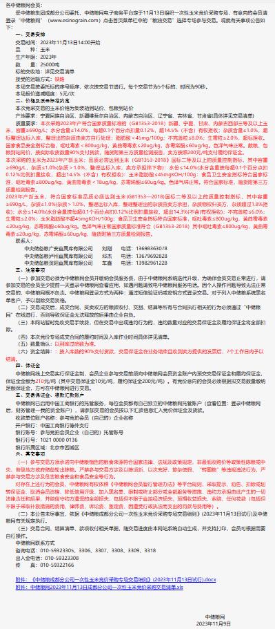 11月13日中儲糧成都分公司一次性玉米競價采購專場公告