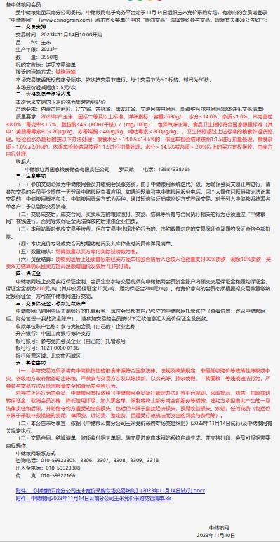 2023年11月14日中儲糧云南分公司玉米競價采購專場公告
