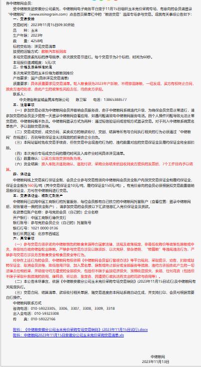 2023年11月15日中儲糧安徽分公司玉米競價采購專場公告