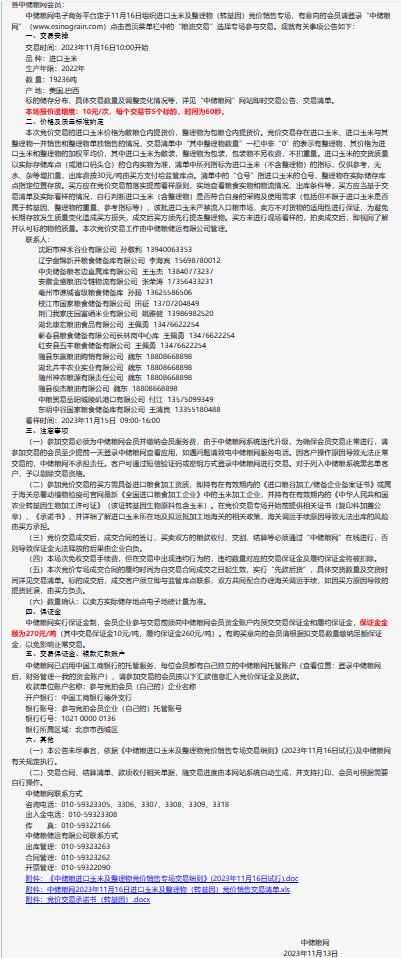 11月16日中儲糧進口玉米及整理物(轉基因)競價銷售專場公告