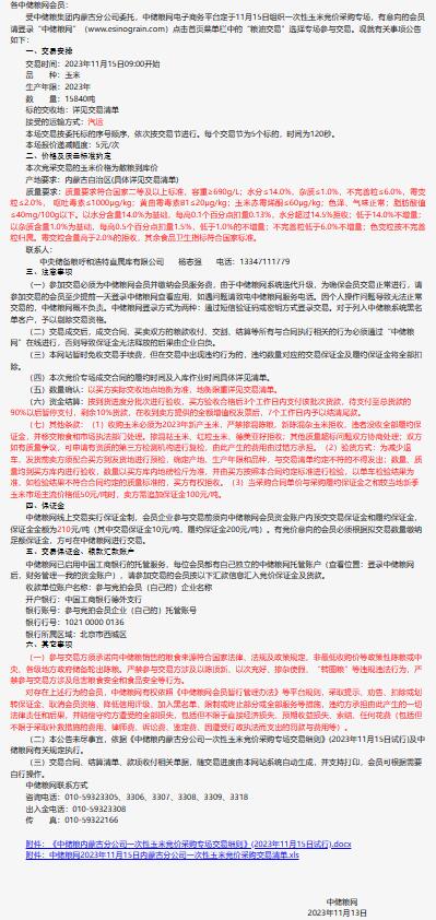11月15日中儲糧內蒙古分公司一次性玉米競價采購專場公告