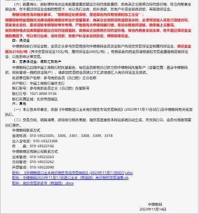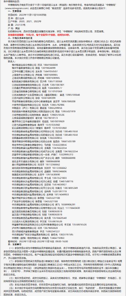 11月17日中儲糧進口玉米及整理物(轉基因)競價銷售專場公告