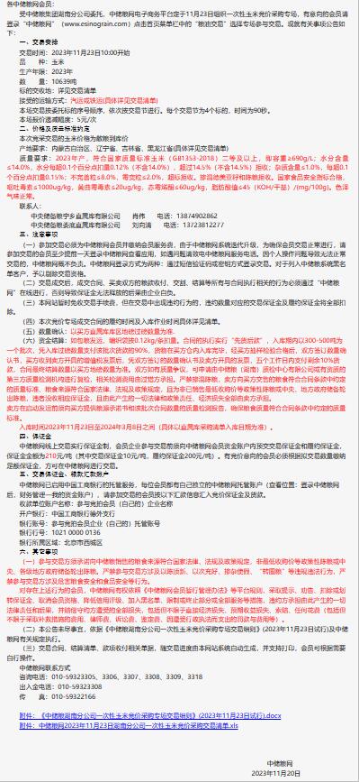 11月23日中儲糧湖南分公司一次性玉米競價采購專場公告