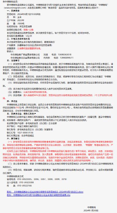 2024年8月1日中儲糧成都分公司玉米競價采購專場公告