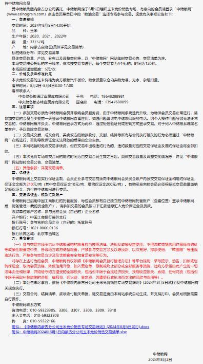 2024年8月5日中儲糧內蒙古分公司玉米競價銷售專場公告