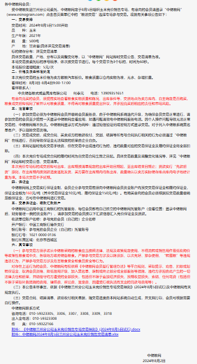 2024年8月5日中儲糧蘭州分公司玉米競價銷售專場公告