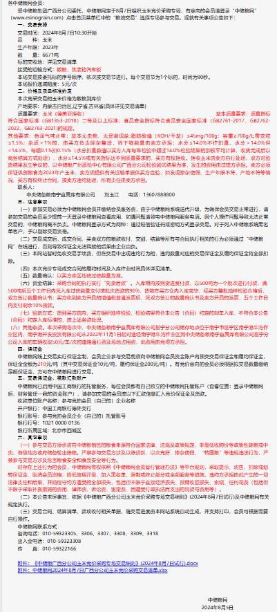 2024年8月7日中儲糧廣西分公司玉米競價采購專場公告