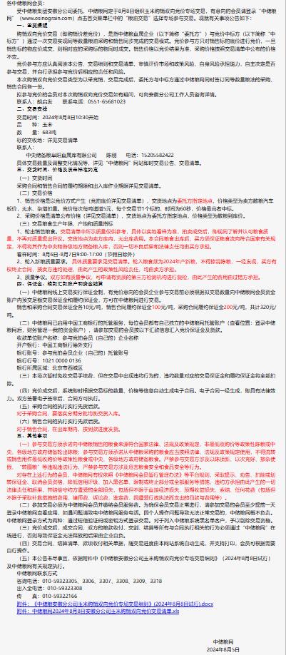 2024年8月8日中儲糧安徽分公司玉米購銷雙向競價交易專場公告