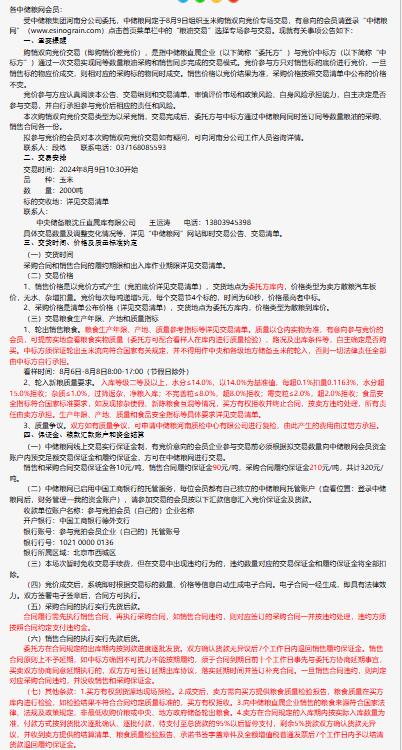 2024年8月9日中儲糧河南分公司玉米購銷雙向競價交易專場公告