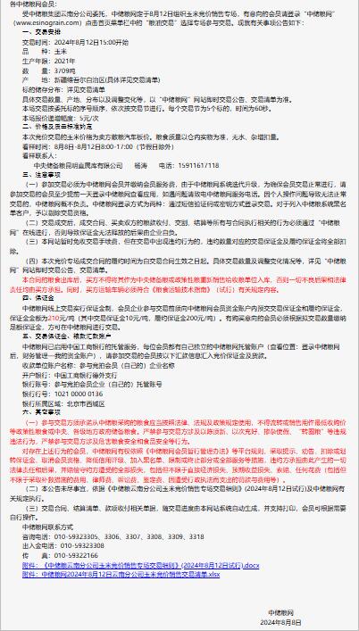 2024年8月12日中儲糧云南分公司玉米競價銷售專場公告