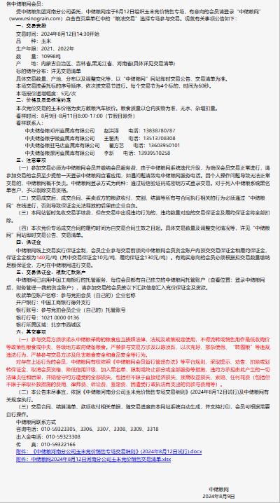 2024年8月12日中儲糧河南分公司玉米競價銷售專場公告