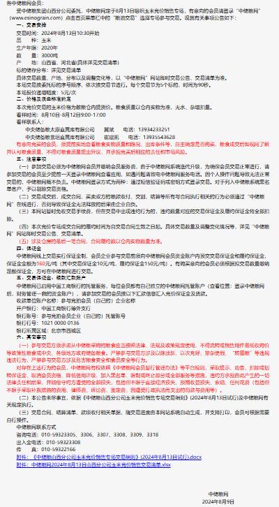 2024年8月13日中儲糧山西分公司玉米競價銷售專場公告
