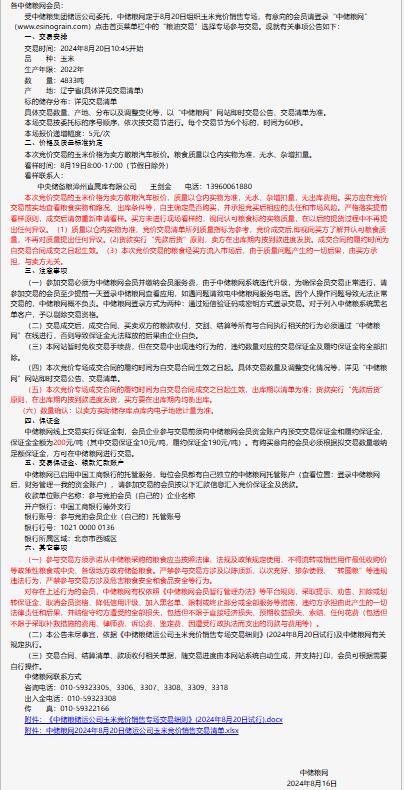 2024年8月20日中儲糧儲運公司玉米競價銷售專場公告