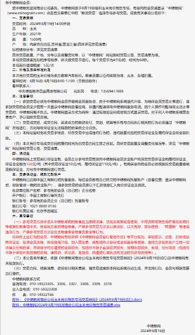 2024年8月19日中儲糧河南分公司玉米競價銷售專場公告