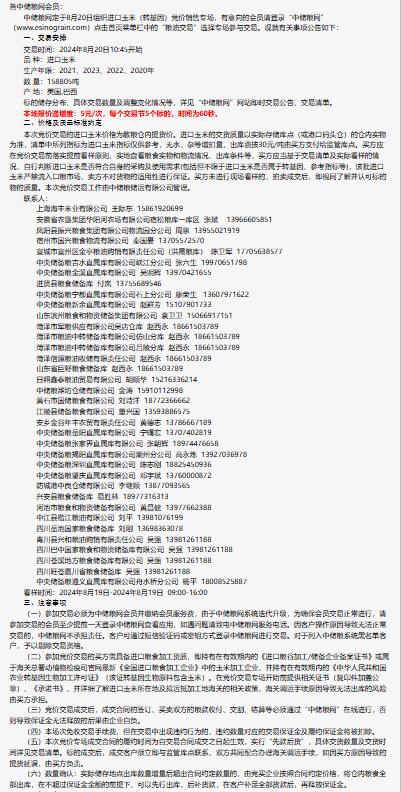 2024年8月20日中儲糧進口玉米(轉基因)競價銷售專場公告