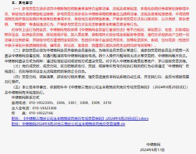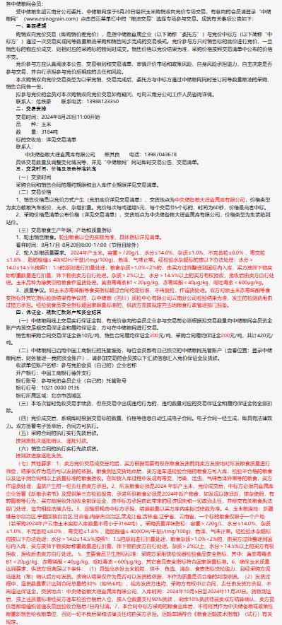 2024年8月20日中儲糧云南分公司玉米購銷雙向競價交易專場公告