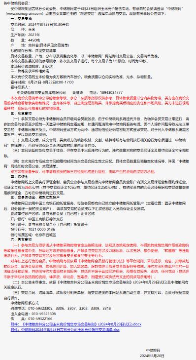 2024年8月23日中儲糧吉林分公司玉米競價銷售專場公告