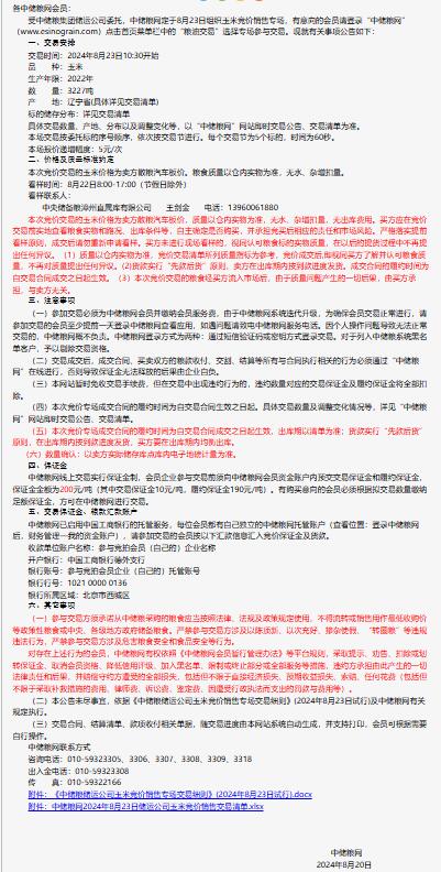 2024年8月23日中儲糧儲運公司玉米競價銷售專場公告