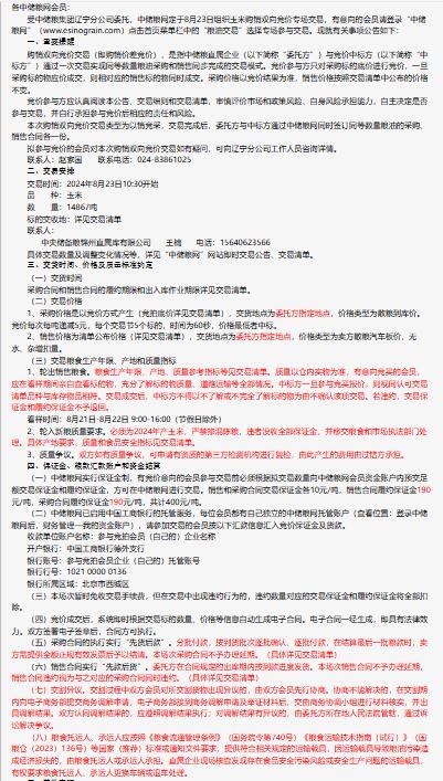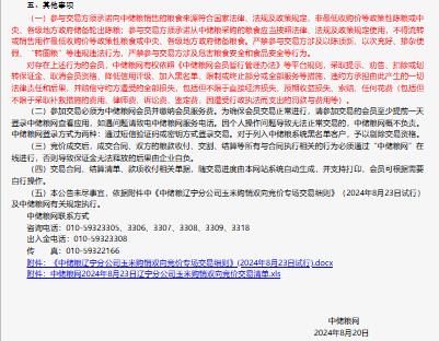 2024年8月23日中儲糧遼寧分公司玉米購銷雙向競價交易專場公告