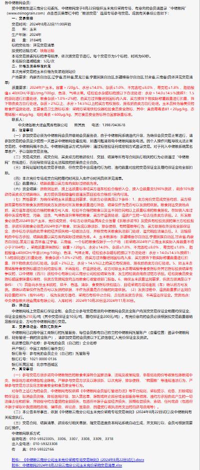 2024年8月22日中儲糧云南分公司玉米競價采購專場公告