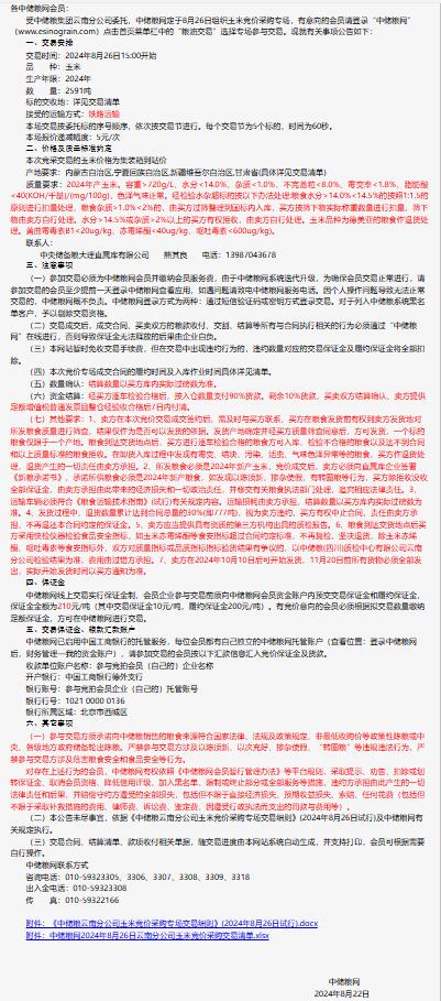 2024年8月26日中儲糧云南分公司玉米競價采購專場公告
