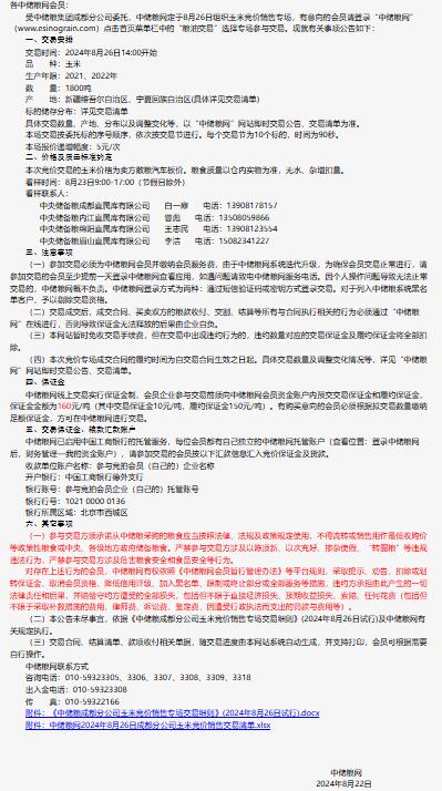 2024年8月26日中儲糧成都分公司玉米競價銷售專場公告