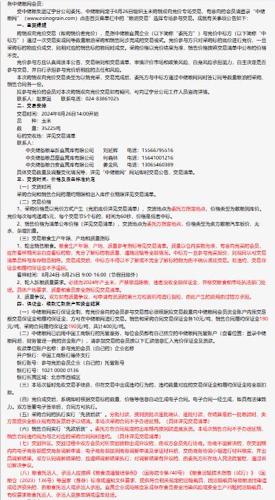 2024年8月26日中儲糧遼寧分公司玉米購銷雙向競價交易專場公告