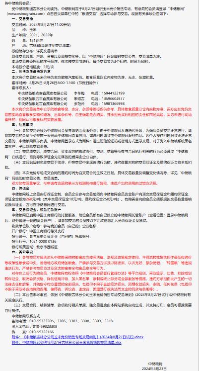 2024年8月27日中儲糧吉林分公司玉米競價銷售專場公告