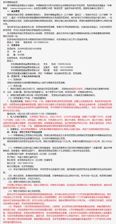 2024年8月26日中儲糧河南分公司玉米購銷雙向競價交易專場公告