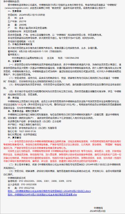 2024年8月27日中儲糧河南分公司玉米競價銷售專場公告